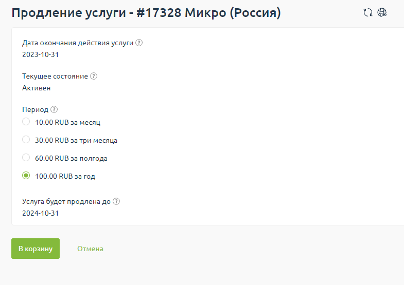 2. Выбираем период, на который будет продлена услуга