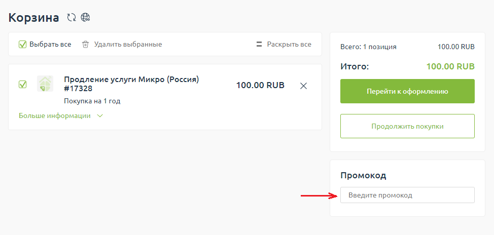 3. Переходим к оформлению заказа, указываем промокод, если есть
