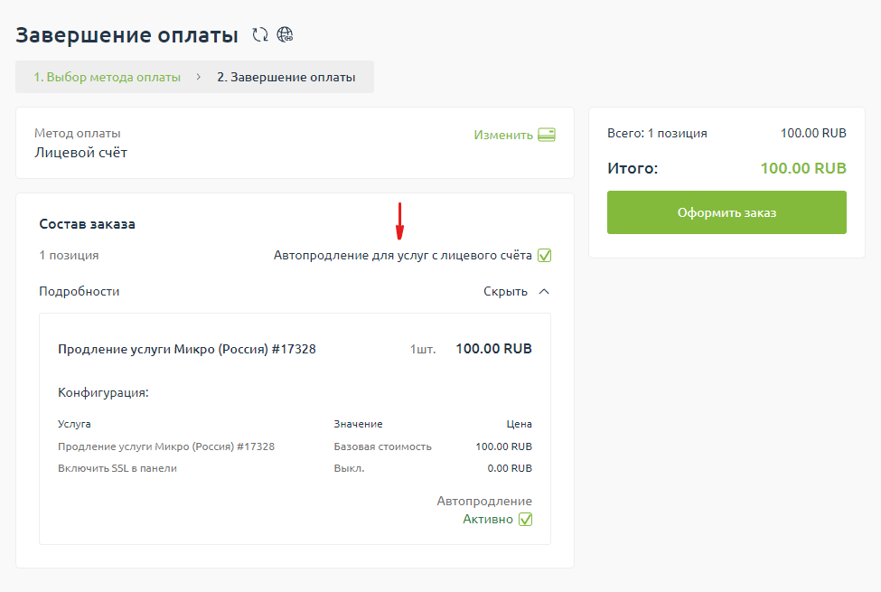 5. Завершаем оплату, выбираем при необходимости опцию Автопродления