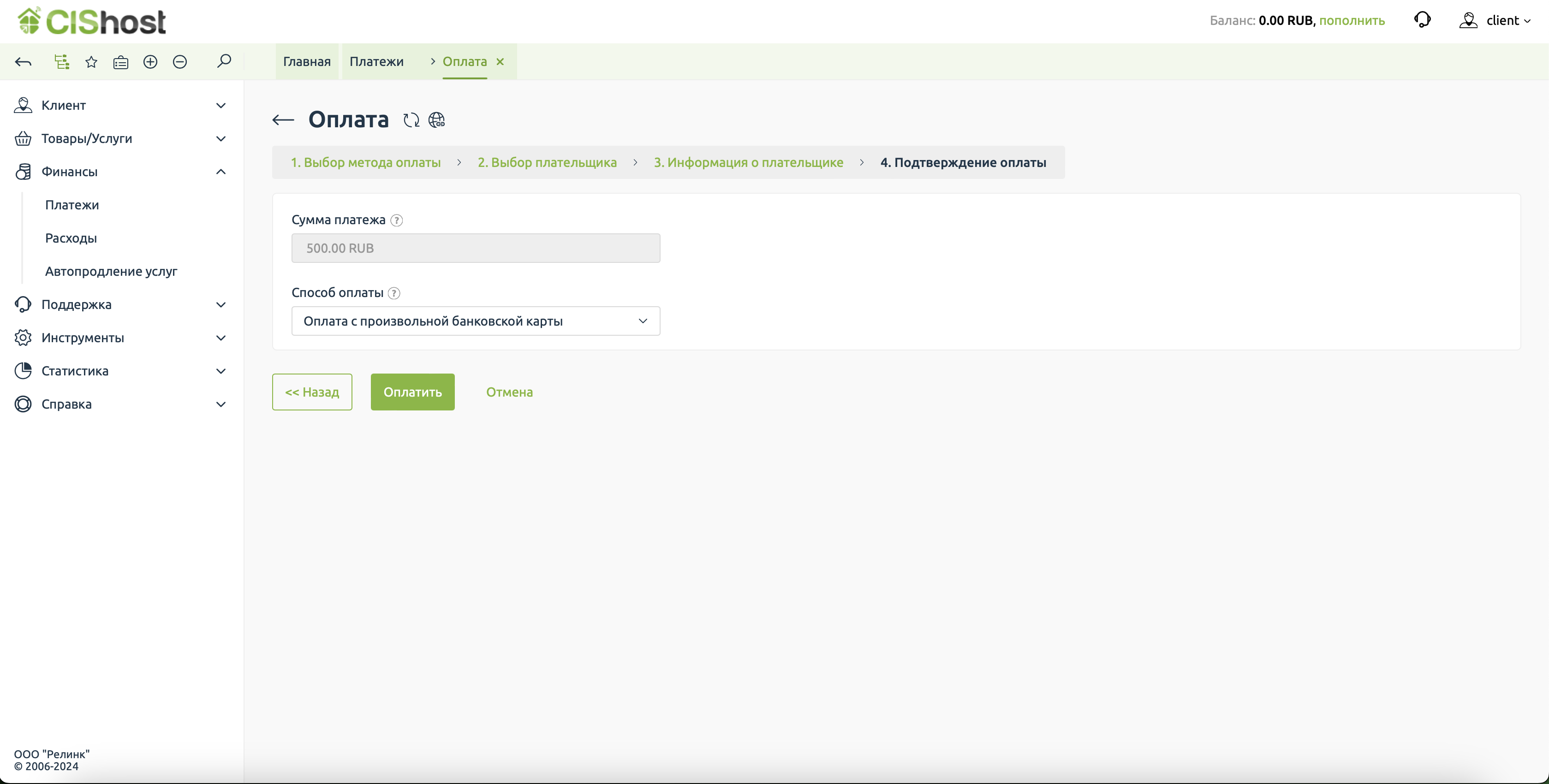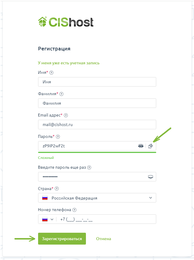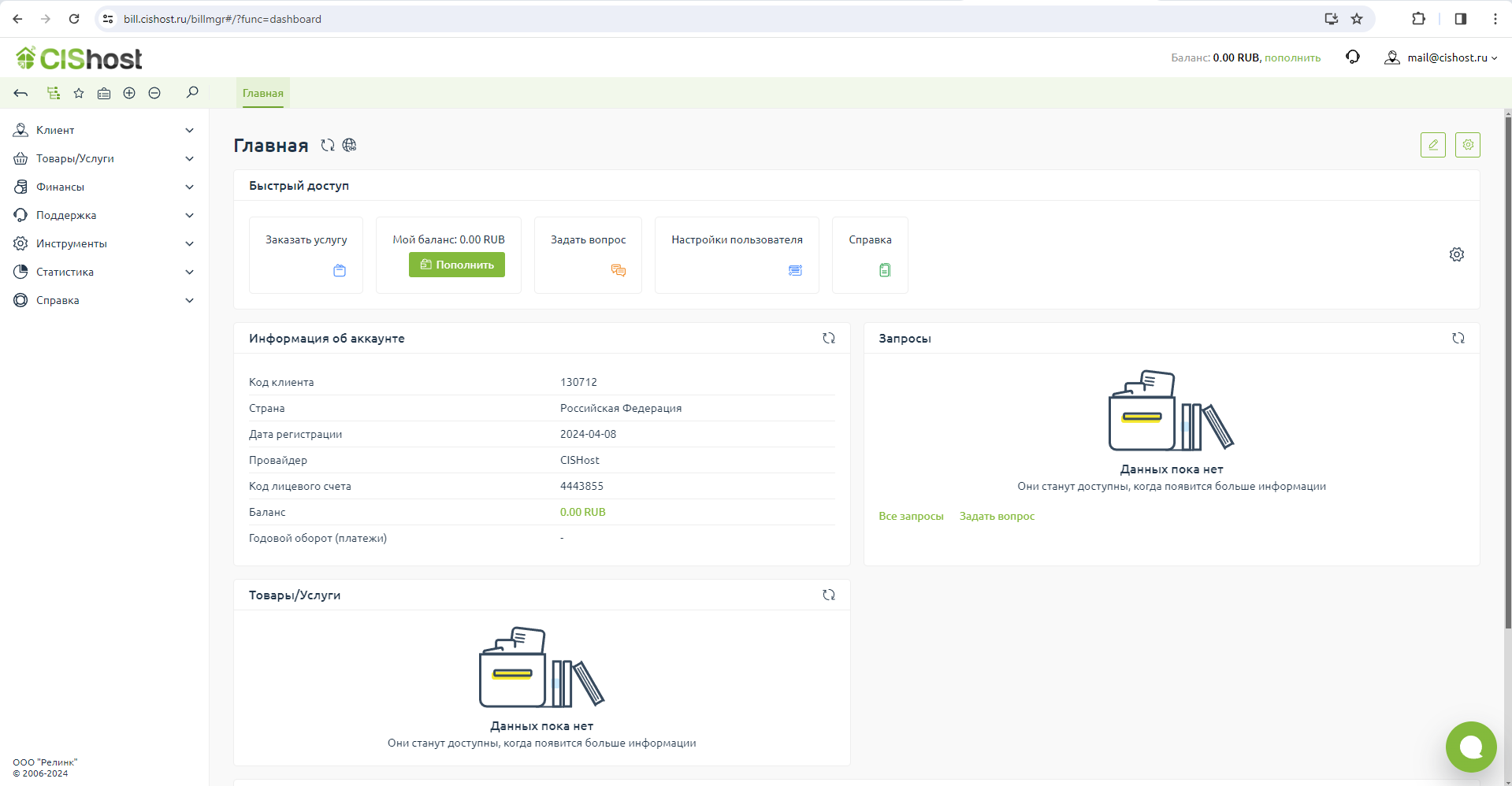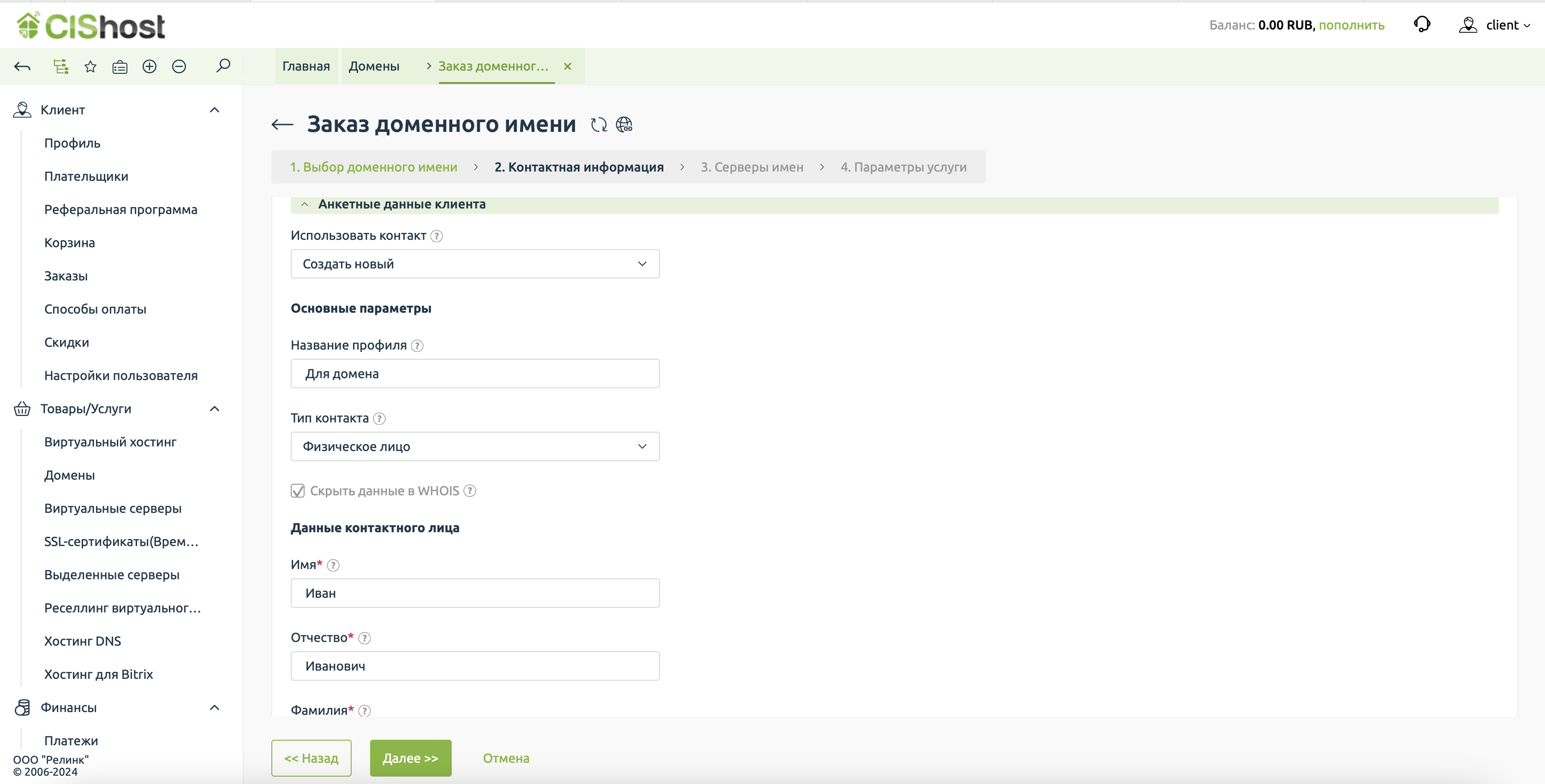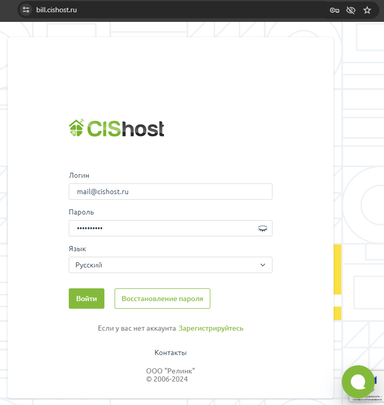 Первый шаг на пути создания сайта - регистрация в биллинговой системе