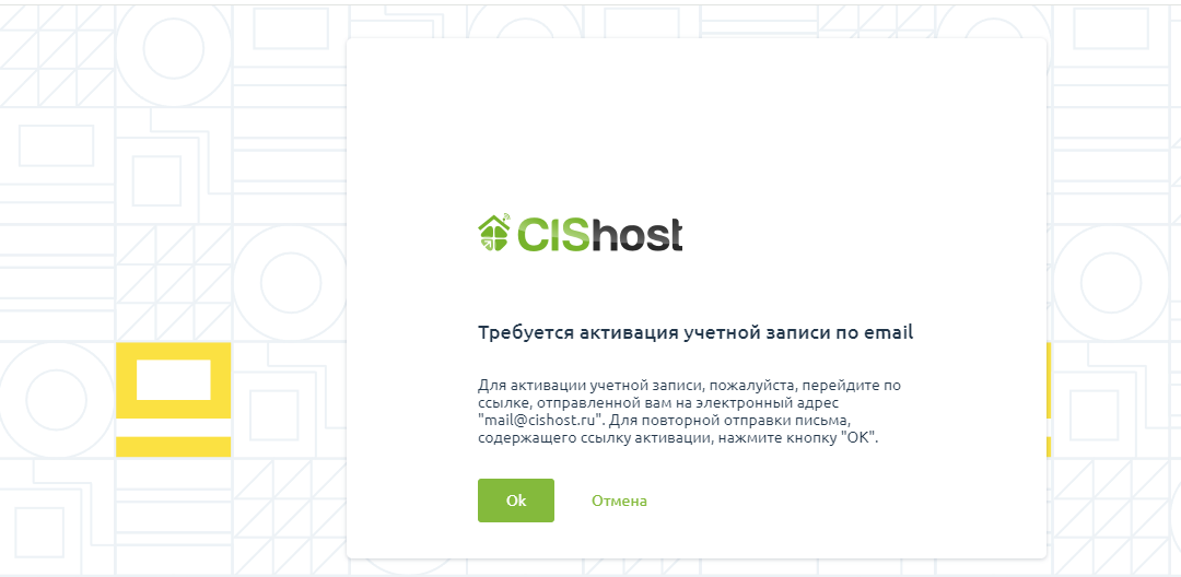 Получаем уведомление о направленном письме на указанный при регистрации e-mail со ссылкой активации учетной записи