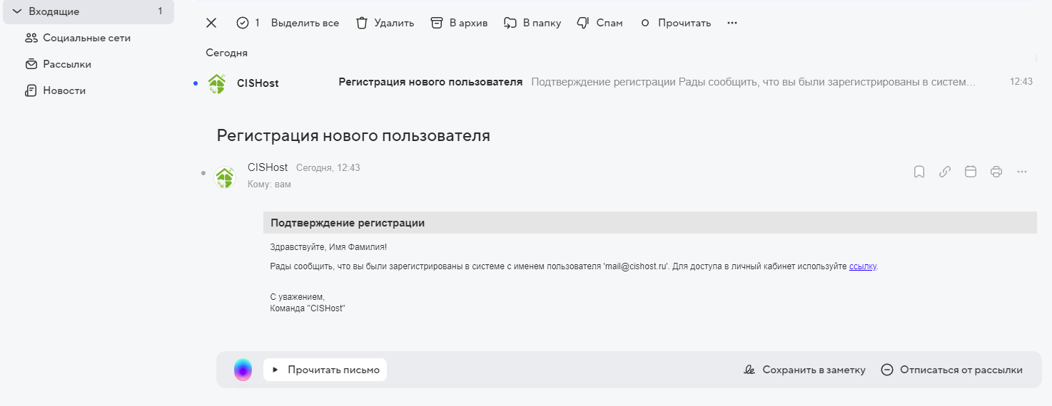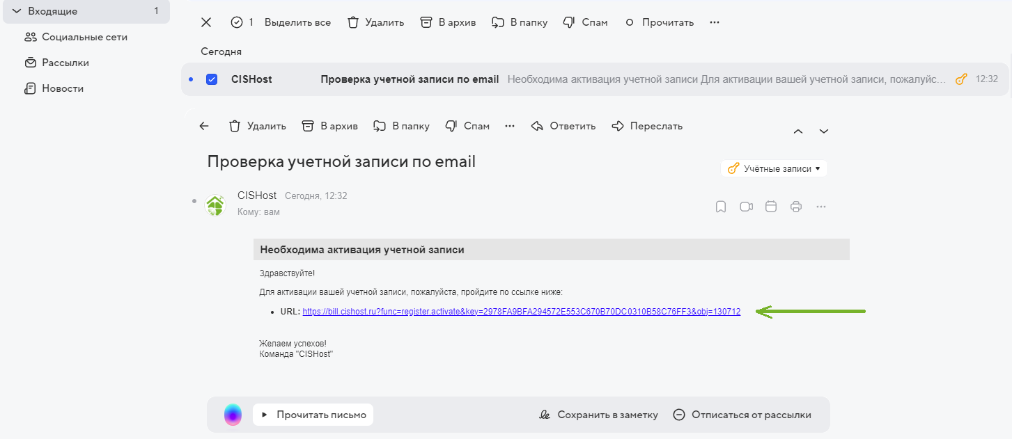 Активируем учетную запись переходом по ссылке, отправленной на e-mail