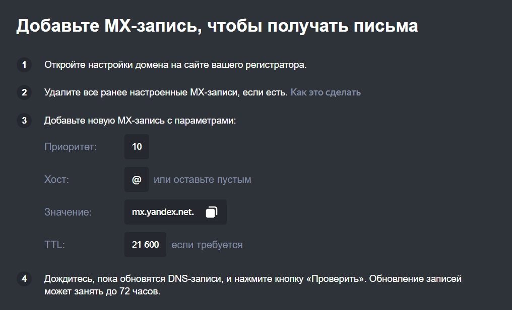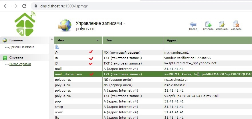 Альтернативное применение бесплатного тарифа "Хостинг DNS - Редирект" - настройка записей яндекс почты для домена