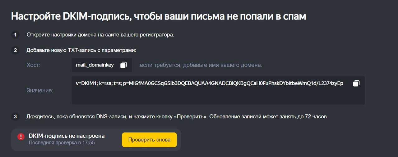 Cогласно заданным в инструкциях от Yandex'a значениям записей (пример ниже):