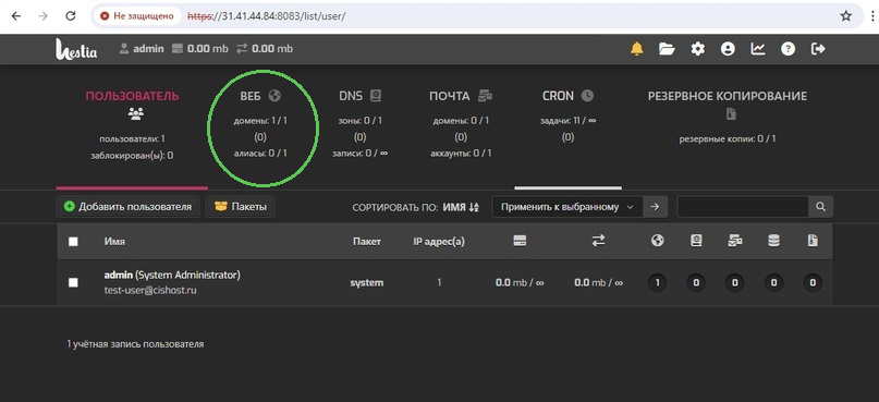 В случае с VDS сервером добавляем домен на сам сервер (в примере ниже в меню "Веб" на сервере с установленной панелью HestiaCP)