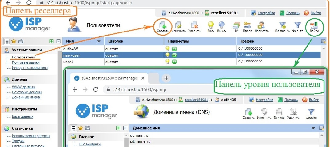 - добавляете пользователей в панель ISPmanager (Reseller);