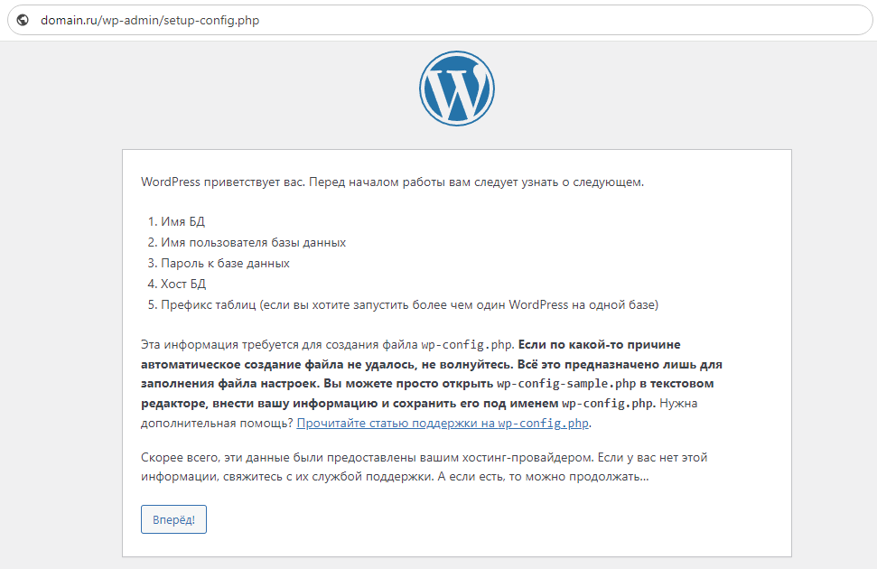 3. Запускаем установку переходом по ссылке: http://имя-сайта.ru/