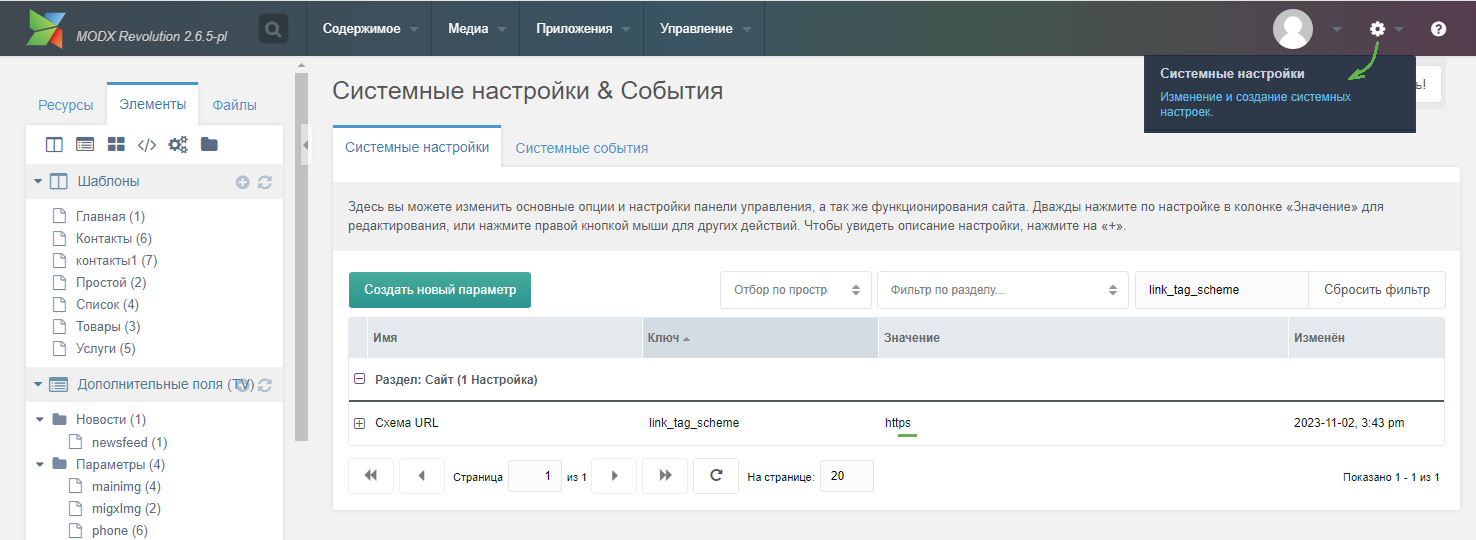 4) Заменить "link_tag_scheme" с "-1" на "https"