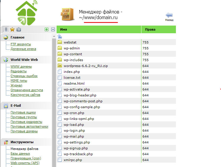 2. Залейте в папку /www/имя_сайта: