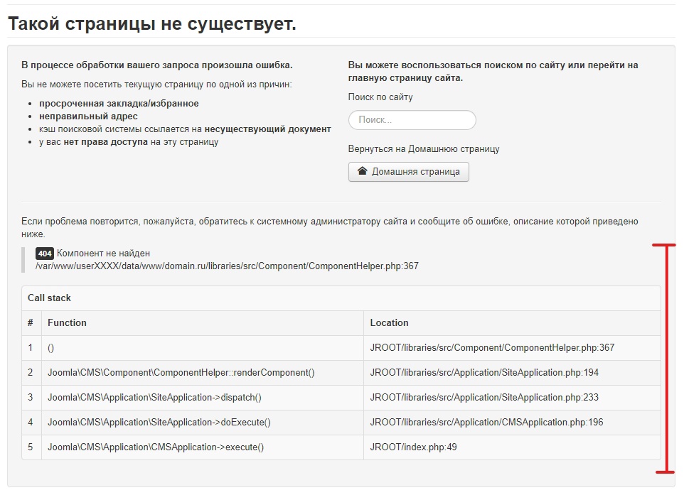 Пример результата указания $error_reporting = E_ALL в Joomla