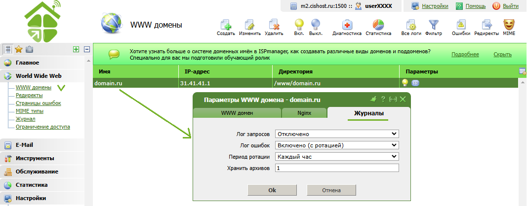 ! Обращаем Ваше внимание, что логи занимают дисковое пространство Вашего аккаунта