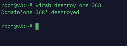 :~# virsh destroy one-3939 - уничтожает (останавливает) виртуальную машину (когда shutdown не работает);