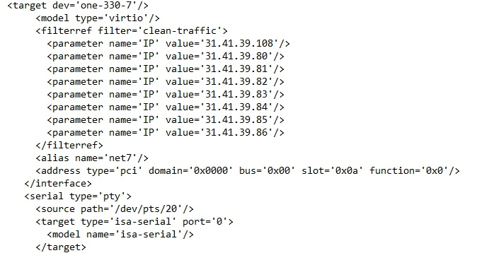 :~# virsh dumpxml one-330 - получение XML дампа конфигурации виртуальной машины